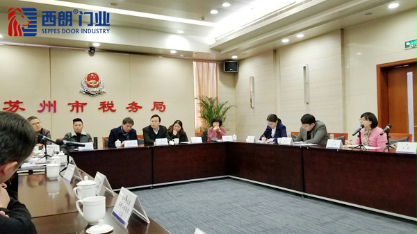 企业座谈会在位于苏州市姑苏区干将西路535号的国家税务总局苏州市税务局的9层会议室举行,国家税务总局调研组先介绍了国家政策层面关于减税降费的具体举措与规定,随后有针对性与各位企业代表进行交流。西朗门业(苏州)有限公司作为代表企业,第一个发言,就企业发展情况、经营现状、缴税情况以及享受到的减税降费普惠政策向国税与位人员进行汇报,同时还就增值税率、个税等方面在实际操作中遇到的问题,提出了建议。