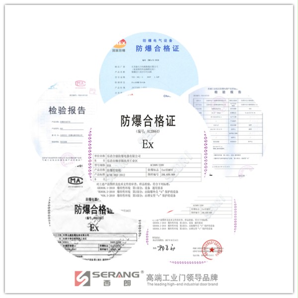 特殊防爆型工业快速门/防爆型工业提升门/防爆型硬质卷帘门认证资质: