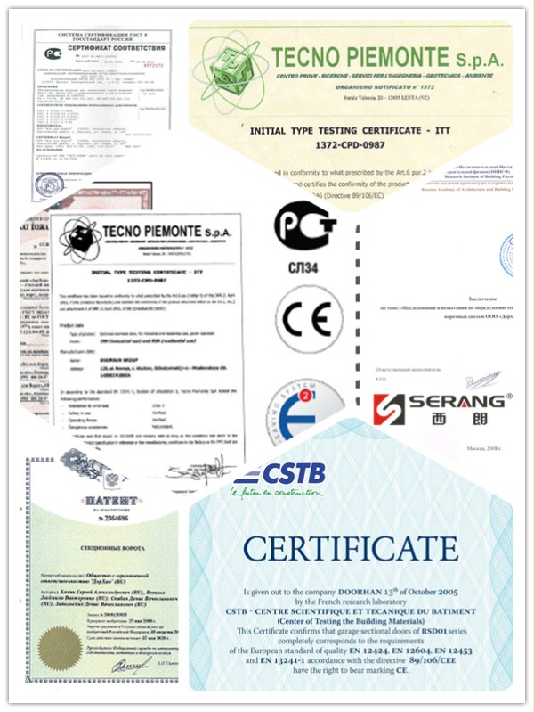 工业门平衡扭簧专利/聚氨酯发泡门板热传导权威检测/国际CE认证/工业门电机认证/欧洲CSTB安全认证: