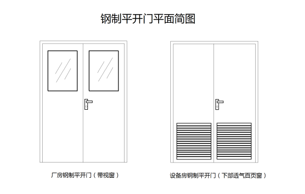 下图为:带视窗的钢制平开门与带百叶窗的平开门示意图: