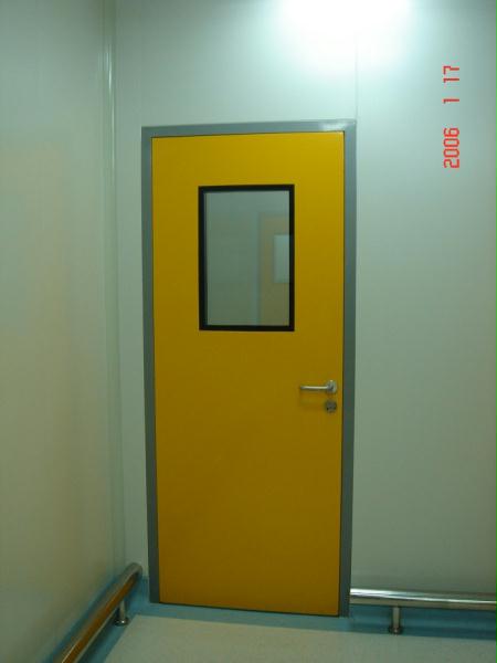 下图为黄色钢制平开门(单开)实拍图: