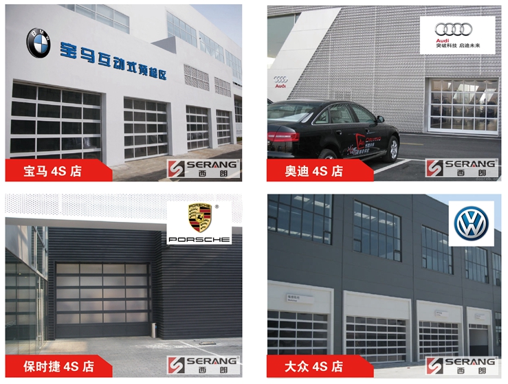 汽车4S店透明提升门优质铝合金边框型材,聚碳酸酯PC板厚度3-5mm,抗冲击力是玻璃的100倍。优良的抗紫外线性能,电机遥控运行,多重安全保护装置,彰显建筑高雅品位。规格一致的视窗结构,采用安全玻璃 , 全透明滑升门起到了与陈列橱窗一样的作用。SERANG西朗透明提升门极高的透明度和透光率,坚固耐用的门板,出色的隔热性能和时尚的设计,使透明滑升门成为重要建筑设计首选的高档用门。