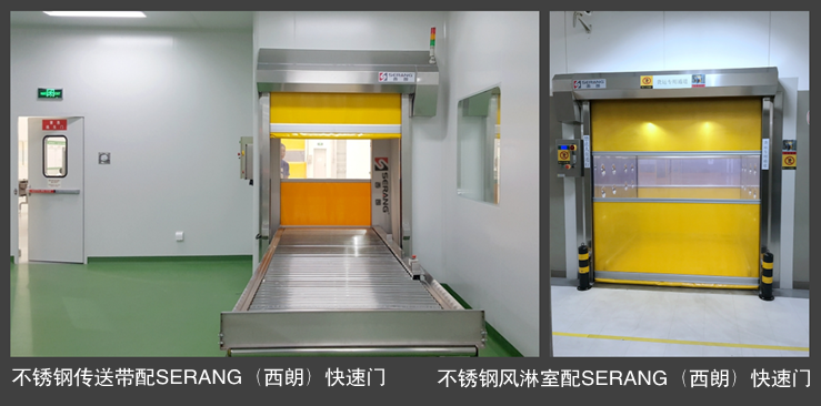 下图为SERANG西朗门业开发的使用于制药与保健食品工厂车间的304不锈钢框架快速卷帘门图片: