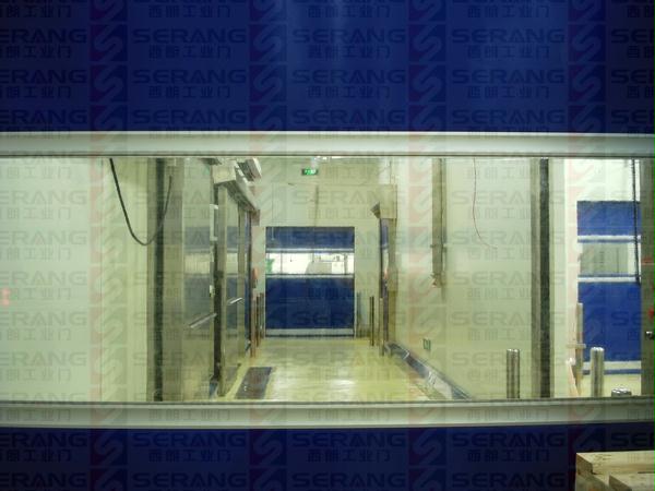 下图为:食品车间西朗不锈钢快速门,该快速门采用德国品牌拉绳开关、品牌红外电眼保护系统和304优质不锈钢精工处理以及高品质的不锈钢配重,还有西朗门业自主开发的带有人机界面显示的控制系统。