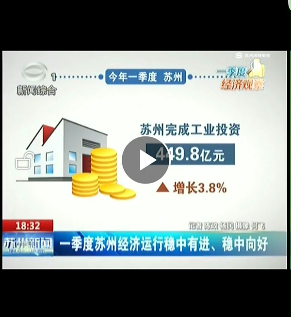 昨晚的《苏州新闻》,苏州工业投资稳中有升。祝贺投资3个多亿的港资企业金德精密新工厂正式开业!苏州1套新闻报道。SERANG(西朗)配套的柔性工业快速门也有上镜。恭喜恭喜!