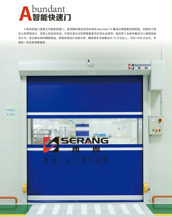 下图为:金德精密工厂内机器人焊接房所配套的SERANG西朗品牌柔性工业快速卷帘门