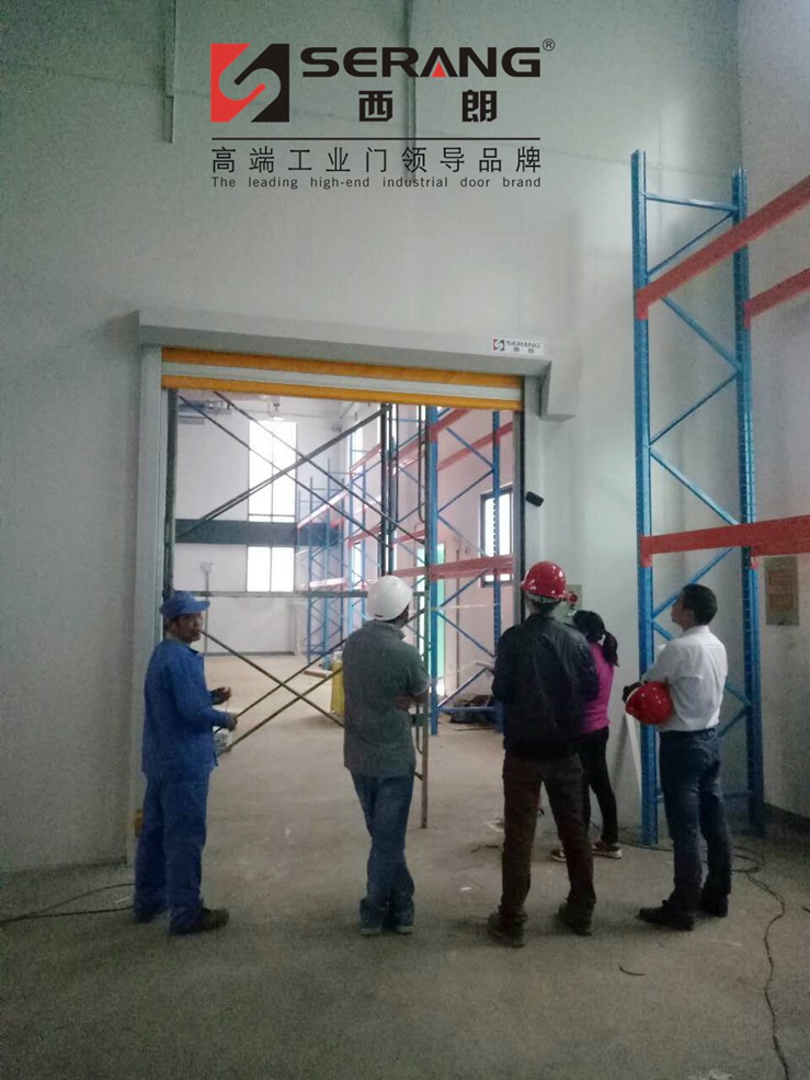 西朗门业(苏州)有限公司在常州市新北区安装的一批工业快速卷帘门如图片,安装完毕进入验收试车阶段。该批常州快速卷帘门采用人机界面控制系统、红外线底部安全保护装置,快速频繁开关,适用企业工厂车间高效运行使用。