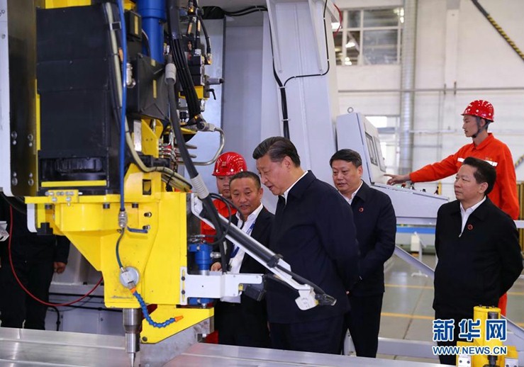 27日上午,正在辽宁省考察的习近平总书记乘车前往当地一家民营企业——辽宁忠旺集团。在生产制造车间,他察看了产品生产线操作运行,并走进高铁高寒车铝合金车体,了解企业发展和转型升级等情况。