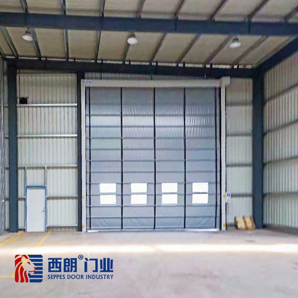 西朗工业堆积门依靠轴筒转动、背带辅助垂直提升帘布,使得帘布呈堆积效果使门开启。而快速卷帘门是通过门轴把帘布卷进去,并不依赖背带的辅助。