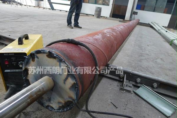 西朗大型钢制卷帘门采用加厚型螺旋焊接8寸管;