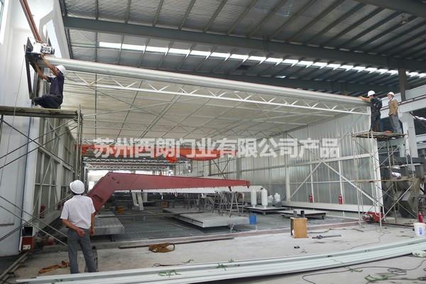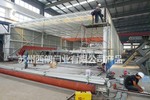12米宽的大型钢制卷帘门适用于:船舶制造企业大型活动房喷涂车间、重型设备车间大型出入口、商场大型出入口等。