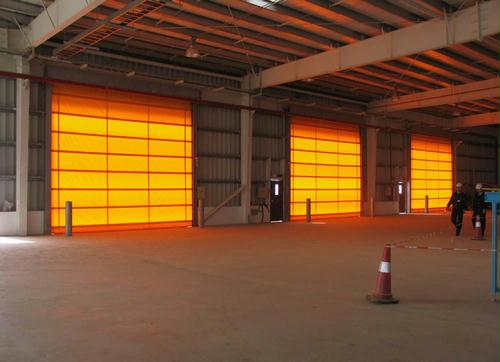 帘布:快速门专用高密度工业基布,厚度为0.8-1.2mm,防火级别达到欧洲NF-P92-503标准,黄色、蓝色、白色或全透明等多种颜色可供选择。