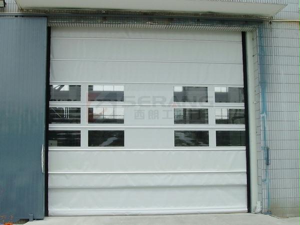 西朗门业生产的背带式快速堆积门,采用折叠式提升方式和多条内置式横向抗风杠杆,其风压可以均布于门帘整体,其抗风性能远高于普通滚筒式快速卷门,特别适合于物流通道,和大面积的洞口。插入式门帘更容易拆卸,维护更加方便。