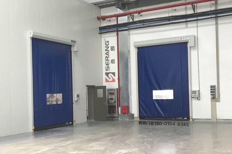 上图为:西朗门业生产的进口品质防撞自动复位拉链高速门图片(安装于美资企业工厂内)