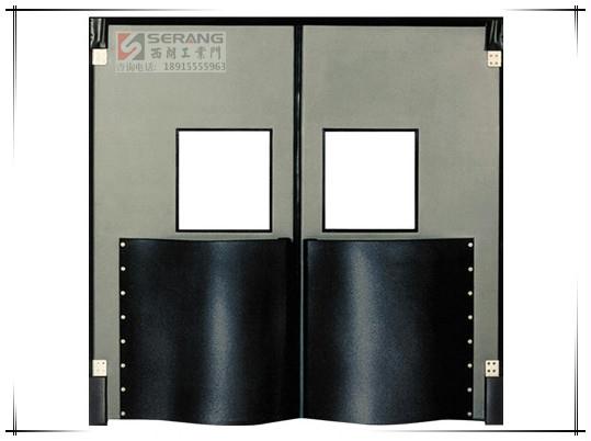 自由门门体采用高密度,防潮的实木芯材,门板为高强度的铝合金板,铝合金表面经过氧化处理,整体厚度为20mm。门体四边安装有特殊设计的铝合金型材,能降低门体四周的磨损,也可以加装密封条,较好地防止室内能量的流失。可视窗口为符合安全标准的透明有机玻璃制成。